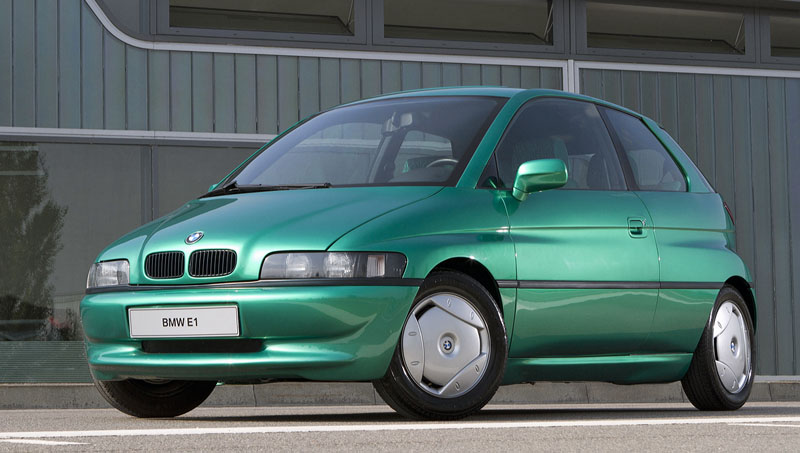 Byl postaven za pouhých deset měsíců novou dceřinou společností BMW Technik GmbH jako lehký vůz pro městský provoz (880 kg), karoserie byla z hliníku a pokrokových plastů, sada akumulátorů Na/S 19,2 kWh o hmotnosti 200 kg uložena v bezpečnostním rámu pod zadními sedadly, za ní umístěn trakční (poprvé střídavý) elektromotor 32 kW (150 N.m) konstrukce BMW s redukčním převodem přímo na poháněné zadní nápravě. Kompaktní rozměry 3640 x 1648 x 1500 mm při rozvoru náprav 2325 mm, největší rychlost 120 km/h a dojezd 160 km by jistě vyhovovaly klientům v městskému provozu ještě dnes, stejně jako nadčasový design. Odpadní teplo z akumulátorů se využívalo pro vytápění interiéru, ve stanici se akumulátory dobily za dvě hodiny, ze zásuvky za šest hodin. Druhá generace BMW E1 byla představena na Frankfurtském autosalonu IAA 1993, dostala účinnější akumulátory ZEBRA, Na-Ni-Cl2 (sodík-nikl-chlorid), lépe vyhovující rekuperaci brzdné energie, základní parametry se změnily jen mírně (19,0 kWh; 125 km/h a zrychlení 0 – 50 km/h ze 6,0 na 5,6 sekundy). V roce 1992 byla v Kalifornii uvedena studie BMW E2, vycházející z první E1, vlastně úprava pro americký trh. Kromě pěti prototypů E1 pokračovaly od roku 1992 přestavby řady 3, nyní už třetí generace BMW 325 (E36); celkem 25 vozů, z nichž osm se zkoušelo ve známém projektu elek-tromobility na ostrově Rujana (Rügen).