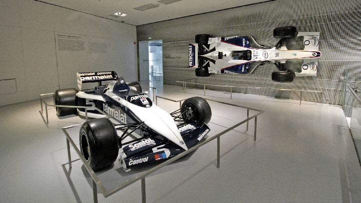 BMW Museum v Mnichově bylo postaveno ve stejné době jako Olympijský stadion 1972 se zavěšenou střechou stanového typu a také administrativní budova společnosti BMW AG, složená ze čtyřice svislých válců, a proto přezdívaná čtyřválec. Stavba muzejní budovy ve tvaru jakési mísy kruhového půdorysu byla zahájena v roce 1971, muzeum BMW bylo otevřeno v roce 1973. Autorem čtyřválce i mísy s obřím logem BMW na střeše je vídeňský architekt Prof. Dr. Karl Schwanzer, obě budovy nyní patří k typické moderní architektuře města Mnichova. V roce 2004 si však avantgardní stavba vyžádala rekonstrukci, k původní výstavní ploše 1000 m2 přibyla další jednopodlažní budova s čtyřnásobnou výstavní výměrou, nyní propojená s původní, která zachovala chodník vedoucí pod střechu ve tvaru bezbariérové šroubovice. Exponáty jsou nyní v obou budovách na celkové ploše 5000 m2, původní muzeum je zasvěceno příležitostným výstavám, rozšířená stálá expozice (125 exponátů) je v nové budově. Je rozdělena na tzv. sedm domů, rovněž podle návrhu Prof. Schwanzera, což jsou Dům designu, Dům společnosti, Dům motocyklu, Dům techniky, Dům motoristického sportu, Dům značky a Dům modelových řad. BMW Museum bylo znovuotevřeno 21.června 2008, na prohlídku se doporučuje nejméně 2,5 hodiny.