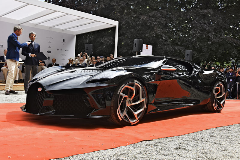 Bugatti La Voiture Noire vzbudilo pozornost v letošní Ženevě, kde se odehrál její světový debut. Designéři Etienne Salomé a Achim Anscheidt odvedli při reminiscenci na legendární Bugatti Type 57 SC Atlantic natolik výbornou práci, že prezident společnosti Bugatti Cars Stephan Winkelmann mohl převzít cenu za vítězství ve třídě. Stala se z něj další událost k 110. výročí značky. Základem vozu je vůz Bugatti Chiron s pohonem W16 se čtyřmi turbodmychadly 8,0 litru, s pohonem všech kol a sedmistupňovou dvouspojkovou převodovkou. Vývoj nového typu ale bude dokončen až za dva a půl roku. Zatím se unikát musí spokojit s provizorním malým elektromotorem dostačujícím k pojezdu po parku. Přesto již našel kupce za 18,68 milionu dolarů, přičemž jak výrobce, tak PR tým fotbalisty popřel, že jím je Cristiano Ronaldo.