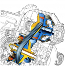 Kapalinou chlazený řadový čtyřválec, uložený vpředu napříč; litinový blok a hliníková hlava válců, pohon rozvodu ozubeným řemenem;
