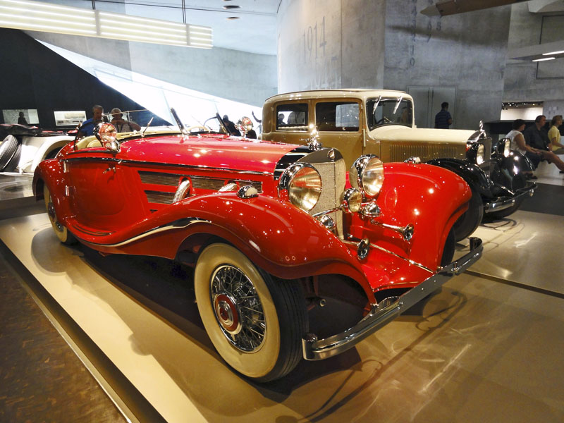 Navazuje na původní sbírky, vystavené donedávna v jiné prosklené stavbě přímo v továrním areálu, jenž zahrnuje také zkušební trať s legendární téměř kolmou stěnou, na níž vůz při jisté rychlosti drží odstředivá síla (z muzea je část dráhy vidět). V roce 1936 byla otevřena první expozice na oslavu 50 let automobilu, za války však sbírka značně utrpěla a mnohé exponáty zmizely navždy. V roce 1961 bylo otevřeno nové muzeum, v letech 1985 až 1986 přestavěné, a konečně 19. května 2006 se otevřely brány dnešního muzea. Představovat značku Mercedes-Benz snad ani není třeba, patří k nejznámějším, stejně jako její produkty nejrůznějších automobilových tříd, segmentů a kategorií. Pod jménem své dcery Mercedes se přihlásil vídeňský podnikatel Emil Jellinek do soutěže Tour de Nice na voze Daimler, v roce 1899 jízdu vyhrál a objednal dalších 36 automobilů jako výhradní zástupce Daimlera v Rakousko-Uhersku, Francii a Americe. Přál si však, aby nesly jméno Mercedes, a to pak přijala rovněž mateřská automobilka.
