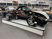 Za volantem s tenkým věncem vám také rychle dojde, že tento nezvykle luxusně vybavený supersport z 80. let minulého století s elektricky ovládanými koženými sedadly, tlustými koberci a klimatizací je poměrně lehký – pohotovostní hmotnost činí pouhých 1566 kg. To proto, že karoserie 959 je kombinací oceli a lehkých materiálů. Základem je ocelová kabina z typu 911, ovšem přední kapota a dveře jsou z hliníku, přední část z polyuretanu PUR-RRIM vyztuženého skelným vláknem a další panely tvoří lamináty z kevlaru a aramidu. Střecha i podlaha dostaly výztuhy z materiálu Nomex, čelní sklo je bezpečnostní Sekuriflex s vnitřní ochrannou vrstvou. Aerodynamika, vyvíjená s pomocí závodního programu 956/962, přinesla součinitel odporu 0,31 a nulový vztlak, což mělo zásadní vliv na stabilitu při rychlostech nad 300 km/h.