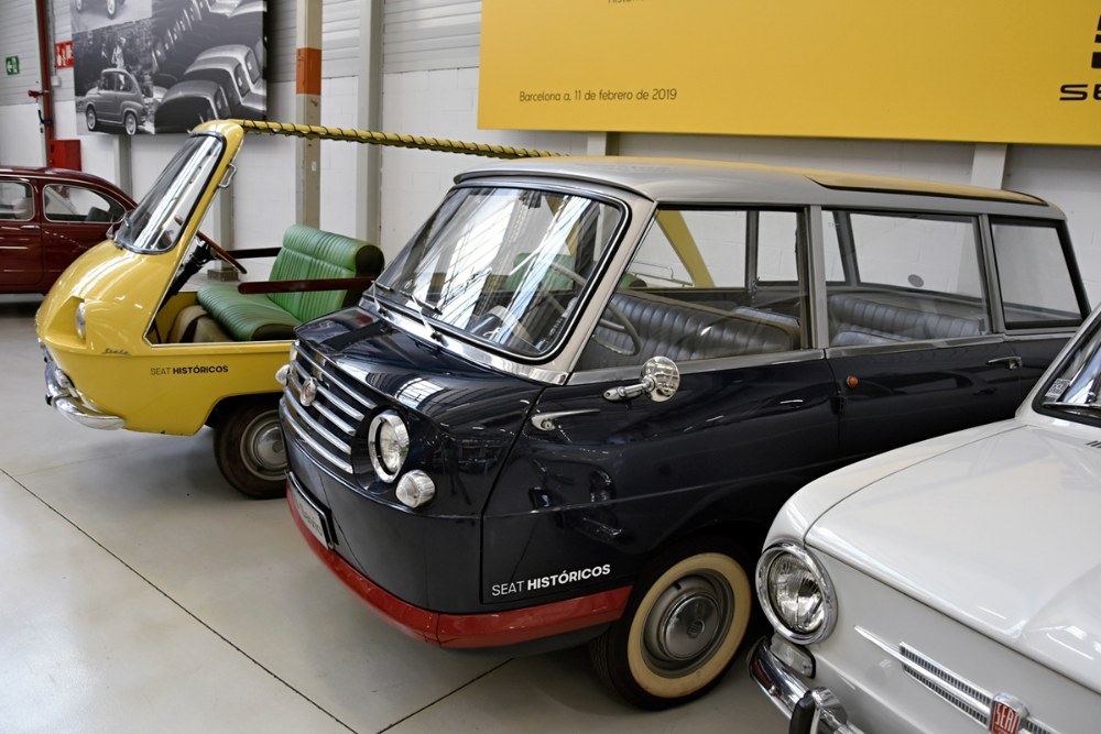 Zpočátku zde z dovážených dílů skládali pět vozů denně. Seat 1400 debutoval na listopadovém barcelonském autosalonu. 13. listopadu 1953 byl oficiálně imatrikulován první z nich a stál jen o něco méně než čtyřpokojový madridský byt se šesti balkony. Na červnovém barcelonském veletrhu debutoval vylepšený 1400 A. Barcelonskou továrnu oficiálně otevřeli 5. října 1955 a Franco cestoval v ceremoniální 1400 Visitas, jejímž základem byla dodávka 1400 B Furgonetta (debut červen 1955). Španělé se tímto modelem emancipovali od Fiatu, neměl italský protějšek. Od 27. června 1957 najeli na druhý typ, Seat 600 (viz AR 9/’08). Nejprve s drobným čtyřválcem 633, pak 767 cm3. Celkem jich do srpna 1973 vyrobili 794 406 kusů různých provedení tudor a rozvážkového 600 Formichetta. Současná expozice má poslední 600 D, který opustil linku 3. června 1973. Roku 1967 nahradil Formichettu mnohem praktičtější van/pick-up vyráběný u Siaty na šasi 600 D. Fissore na stejném základu postavil prototyp plážového vozu Marinella. Endemity byly čtyřdveřové domácí konstrukce včetně verze 800 (viz AR 6/’18), které se uplatnily i jako taxi (18 200 kusů v letech 1964–1967) a jednoprostorové 600 Savio, jež nakreslil roku 1961 italský designér Pietro Frua a realizovalo studio Savio v Itálii. Vybavili je unikátní nasazovací střechou a velkými bočními okny. Jinou exotikou byl jednoosý vlek s cenou bezmála čtvrtiny Seatu 600 D. Roku 1963 nahradil rozměrný 1500 s novou karoserií sedan nebo kombi (58 až 72 k, včetně dieselu Mercedes) poslední evoluci 1400 C (viz AR 12/’19).