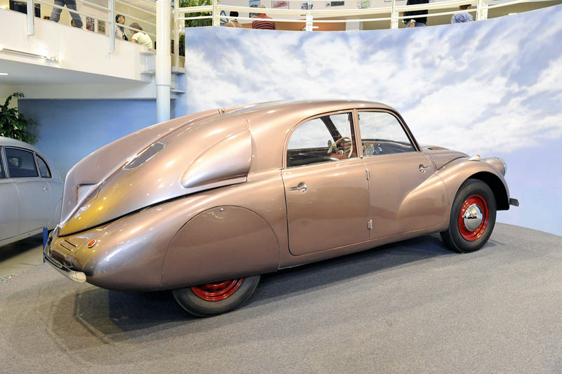 Skutečnou senzací se staly osobní aerodynamické vozy Tatra, které dodnes vzbuzují obdiv na celém světě a jsou vyhledávanými objekty zájmu sběratelů. Není bez zajímavosti, že první malý prototyp Tatra V 570 s proudnicovou karoserií a dvouválcem 854 cm3 v zádi byl inspirací pro Brouka Volkswagen, vznikl však jen ve dvou prototypech roku 1933 (jeden modrý vůz je vystaven). Sériové produkce se dočkaly až aerodynamické osmiválce, na svou dobu ojedinělé automobily s největší rychlostí až 160 km/h, poháněné vzduchem chlazenými motory, uloženými ve splývající zádi. V roce 1934 se představila Tatra 77 na Pražském autosalonu s třílitrovým motorem OHC 2968 cm3 o výkonu 44 kW (60 k)/ 3500 min‑1 a rychlostí 150 km/h, následovala vylepšená Tatra 77A se zvýšeným objemem na 3395 cm3 a výkonem 55 kW (75 k) a konečně v roce 1936 nejslavnější Tatra 87, opět s třílitrem, ale s výkonem 55 kW (75 k). Vyráběla se do roku 1950, vzniklo 3023 vozů, z toho 1750 po válce. Obdobný čtyřválcový model nesl označení Tatra 97. Neblahé důsledky komunistické hrůzovlády zasáhly také automobilový průmysl, po válce bylo kopřivnické továrně nařízeno vyrábět jen nákladní vozy, a nový aerodynamický čtyřválec Tatra 600 (107) Tatraplan se stěhoval na výrobní linky Škoda do Mladé Boleslavi. Vedení továrny n. p. Tatra se však podařilo prosadit nový typ 603, znovu s osmiválcem (ale OHV), který se vyráběl až do roku 1975. Produkci osobních automobilů Tatra pak uzavřel typ 613 (osmiválec DOHC 3498 cm3), resp. jeho faceliftovaná verze Tatra 700.