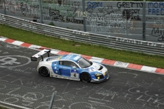 Po startu došlo k souboji Audi R8 LMS týmu Phoenix číslo 4, za jehož volantem se střídal Stippler s Ammermüllerem a bratry Stuckovými (synové Hans-Joachima), s nejrychlejším dvanáctiválcem Aston Martin, ale byl to právě Pedro Lamy, který si nakonec pojistil vedení, i když sváděl ostrý souboj s největším soupeřem jako kdyby šlo o sprint, nikoli závod na 24 hodin! Problémy u Audi však začaly poměrně záhy, číslo 4 po výletu z trati měnilo díly závěsu kola (v cíli osmé), druhý vůz číslo 1 dovedl místní hrdina Frank Stippler z Bad Münstereifelu spolu s Winkelhockem, Fässlerem a Rockenfellerem (přiletěl ze závodu DTM v Brands Hatch) na pátém místě, třetí er-osma číslo 3 byla devátá (mj. v posádce Frank Biela), nicméně dvě favorizované posádky Audi (Team Abt a WRT) skončily po haváriích. Aston Martin po restartu vedení neudržel (desátý); šéf firmy Ulrich Bez se svou posádkou na experimentálním dvoupalivovém (vodík/benzin) V12 Rapide S číslo 100 závod dojel se 61 okruhy na 112. místě, čímž se zapsal do historie jako první s vodíkovým automobilem...