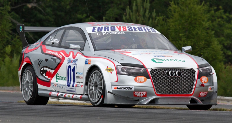 Osmiválce už pohánějí jen okrajové formule (GP2 -Series, AutoGP), ale v závodech cestovních vozů se stále drží díky různým šampionátům NASCAR (včetně evropského), ale také německého DTM a zámořských sérií V8 u protinožců, kde se těší neobyčejné popularitě se vstupem nových značek (Mercedes-Benz, Volvo a Nissan). Italský mezinárodní šampionát nyní obsazují jezdci především s automobily značek Audi, BMW, Mercedes-Benz, Lexus a Chevrolet (viz též AR 10/’13). V sezoně 2014 se poprvé stal pravidelným účastníkem V8 český reprezentant. Zlínský Tomáš Kostka, jenž má bohaté zkušenosti nejen z mnoha mezinárodních šampionátů (DTM, F3000, 24 h Le Mans, FIA GT3), ale i domácích okruhů a dokonce rallye, absolvoval sezonu 2014 v nejúspěšnějším týmu Audi Sport Italia (drží šest mistrovských titulů V8), který vede Emilio Radaelli, známý navigátor rallye. Třicetiletý Kostka, stejně jako jeho italští kolegové Emanuele Zonzini (dvacetiletý, jel i GP3 Series), Davide Stancheris (35, přišel ze závodů GT) a veterán Ermanno Dionisio (od roku 2009 zkouší V8), byl jezdcem týmu Audi Sport Italia na voze Audi RS5, jenž se od soupeřů liší malým motorem (4,2 l V8/331 kW/450 k, pouze BMW M3 má ještě menší čtyřlitr), ale také pohonem všech čtyř kol (ostatní pohon zadní nápravy).