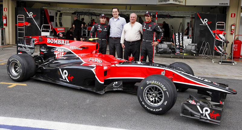 Zjevně podpořil unikátní vývoj vozu F1, kdy Nick Wirth vsadil jen na počítače (bez aerodynamického tunelu) a vyvinul monopost výše zmíněnou simulací CFD u své firmy Wirth Research v Bicesteru. Výsledek nebyl tak špatný, nový Virgin VR-01 pokořil výrobky druhých dvou nováčků HRT (Hispania Racing) a částečně i Lotus Racing (nyní Caterham), který porazil už ve třetím závodě (US F1 vůbec nenastoupil). Poprvé vyjel při testu 4. února 2010 řízen Timo Glockem v Silverstone, o den později usedl za volant i druhý jezdec Lucas Di Grassi z Brazílie, oba pak absolvovali první sezonu. Na body samozřejmě nedosáhli, testovací jezdci Alvaro Parente (odstoupil portugalský sponzor) a Španěl Andy Soucek se ani nesvezli, jejich místo už tehdy převzal Luiz Razia, jenž se měl pak shodou okol-ností stát jezdcem F1 pro 2013. Že to nevyšlo, už víme. Dnes vítězí v Indy Lights. Po prvním roce vstoupila do týmu firma Marussia Motors z Moskvy, jejíž ambice vyrábět silniční sportovní vozy už zřejmě skončily (viz AR 2/’14); tehdy však měla velké plány.