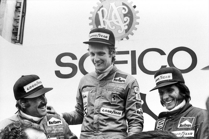V sezoně 1974 vyhrál Lauda první Velkou cenu F1 ve Španělsku, na titul ještě nedosáhl, když v posledních pěti závodech odpadl. O rok později už byl suverénním mistrem světa, v roce 1976 přežil nehodu s převráceným traktorem i těžkou havárii na Nürburgringu (celkově druhý) a pro druhý titul na Ferrari si dojel v sezoně 1977. Překvapením byl jeho odchod k Brab-hamu, památné je vítězství na vysavači Brabham ve Švédsku 1978, kdy přítlak vozu zajišťoval obrovský ventilátor (záhy zakázáno). To už však Niki myslel na Lauda Air a z okruhů zmizel. Přesvědčila ho až nabídka McLarenu, kde přidal dalších osm vítězství. Do konce roku 1985 absolvoval 171 Grand Prix a 25 z nich vyhrál. Vrhl se znovu na leteckou dopravu, svoje Airbusy a Boeingy sám pilotoval...