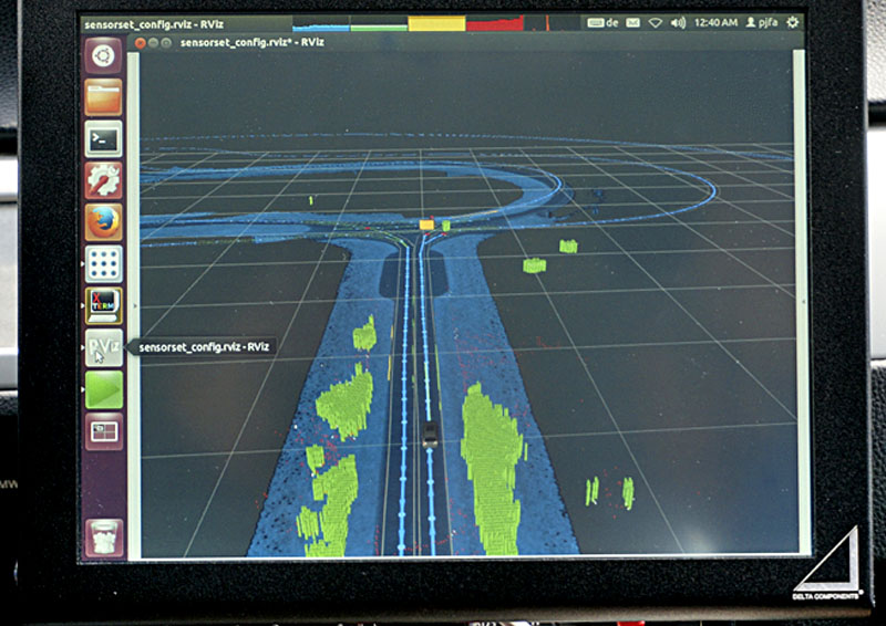 Používají se dva vozy BMW 325d Touring, nově také Tesla Model S, vybavené kamerovými systémy, radary, lidary a ultrazvukovými čidly, jimiž monitorují okolí. Výkonná elektronika, jež zatím zabírá celý zavazadlový prostor, vytváří trojrozměrný obraz situace kolem vozu a na základě různých algoritmů na ni reaguje regulací rychlosti a směru jízdy. Samotná jízda je zvláštní zkušeností. Vůz se rychlostí cca 80 km/h pohyboval zcela plynule po asfaltové silnici, před ostřejšími zatáčkami dostatečně zpomalil a po projetí náročnější pasáže opět zrychlil. Na simulovaných křižovatkách dal přednost automobilu přijíždějícímu po hlavní silnici, pak se opět rozjel. O svém chování neustále informoval posádku, což je podle Bosche pro rozvoj těchto systémů důležité. Zavádění takové jízdy bude postupné, ale už dnešní automobily dokáží jet samy (řidič musí mít z legislativních důvodů ruce na volantu), například po dálnicích nebo silnicích první třídy s jasně určeným vodorovným značením, či samočinně následovat kolonu v dopravní zácpě.