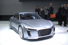 Pouze technickou studií ryzího elektromobilu je čtyřsedadlový Audi A2 Concept, který propojuje technologii e-tron s ultralehkou stavbou a dalšími podněty pro vozy budoucnosti. Tak třeba řízení a brzdy jsou převedeny na elektrické ovládání by-wire a vůz využívá komfortnější indukční dobíjení. Větší Audi A3 e-tron Concept byl navržen jako paralelní Plug-In Hybrid. Jeho čtyřválec 1.4 TFSI dává výkon 155 kW, elektromotor přispívá 20 kW a oba pohánějí přední kola. Akumulátory Li-Ion 12 kWh v čistě elektrickém módu dovolují dojezd asi 50 km. Automobil přijde v roce 2014 do sériové produkce jako Plug-In Hybrid, o něco později budou v obdobném uspořádání pohonu také Audi A4 a velké SUV Q7. Zajímavou alternativou ke koncepci paralelního hybridu je rozdělení výkonu spalovacího motoru a elektromotoru mezi jednotlivé nápravy. Pro takovou studii e-tron quattro byl vybrán osobní automobil Audi A5. Motor 2.0 TFSI, uložený vpředu, doplnily dva elektromotory, jeden na přední a druhý na zadní nápravě. Jako Plug-In Hybrid se tento A5 e-tron Quattro nabíjí ze zásuvky.