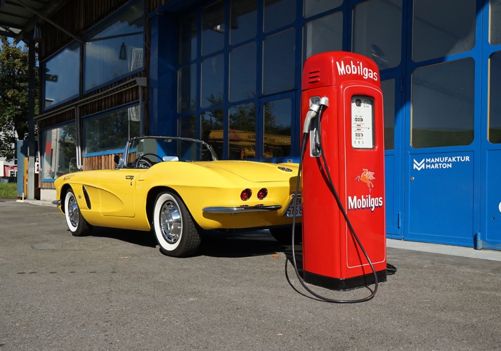 U společnosti Manufaktur Marton zašli ještě o kousek dál. Kromě veterána s elektrickým pohonem nabízejí také originální domácí dobíjecí stanici o výkonu až 22 kW. Na zakázku lze proměnit v nabíječku cokoliv, nejvíce stylovou možností je ale stojan z historické čerpací stanice. „Zákazníci mohou přijít s jakýmkoliv vlastním nápadem, případně můžeme dobíjecí stanici integrovat do v podstatě jakékoliv existující věci. Možnosti jsou velmi široké, a proto je také obtížné říct, jaká bude cena,“ upřesňuje Silvia Marton ze společnosti Manufaktur Marton. Jistou představu o nákladech ale dává britská společnost Electric Classic Cars. I ta nabízí nabíjecí stanici integrovanou do historického stojanu čerpací stanice. V jejím případě si můžete vybrat z různých barevných provedení (Shell, Esso, Gulf atd.). Dobíjecí výkon je maximálně 21 kW. Základní cena činí v přepočtu 86 tisíc korun bez DPH.