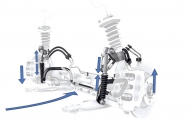 Za pozornost stojí především řešení zadního aktivního spoileru, jenž je nejen o 20 % lehčí než dříve, ale současně i o čtvrtinu širší (1137 mm). Spoiler se vysouvá při rychlosti nad 120 km/h a znovu klesá do karoserie po zpomalení pod 80 km/h. Dokáže například u typu 911 Carrera S, vybaveného o 20 mm sníženým aktivním podvozkem, omezit vztlak zadní nápravy o 80 N. Tím se poprvé u tohoto typu vztlak v zadní části zcela eliminuje (dosud pouze u verzí GT). Zajímavostí je, že se aktivní spoiler nastavuje i v závislosti na otevření střešního okna, jež je nyní větší a vysouvá se vzhůru nad střechu vozu. Součinitel odporu vzduchu činí cx = 0,29. Podvozek nové 911 se drží osvědčené základní koncepce, je však navržen zcela nově s důrazem na snížení hmotnosti a přizpůsobení nové konfiguraci vozu. Standardně dodávaný ocelový může být doplněn aktivními tlumiči PASM, které nemusí být jedinou aktivní součástí zavěšení kol.