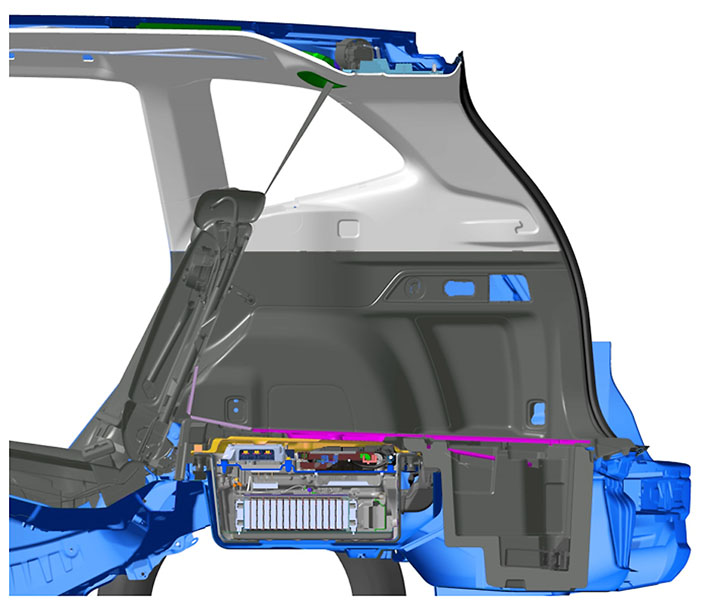 Subaru se rozhodlo použít relativně málo výkonnou elektrickou část hnací soustavy, elektromotor disponuje výkonem 12,3 kW (16,7 k). Tím bylo možné použít malý lithium-iontový akumulátor s kapacitou 0,6 kWh, jenž se spolu s měničem napětí vejde pod podlahu zavazadlového prostoru, který si například v typu XV zachovává svůj původní objem 385 l. Akumulátor je mezi zadními koly dobře chráněn a je umístěn v robustní schránce testované proti různým typům nárazů. Protože pro svoji optimální činnost potřebuje teplotu kolem 20 stupňů Celsia, což je současně příjemné klima i pro člověka, je chlazen, případně vyhříván vzduchem nasávaným z interiéru vozidla.