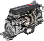 Nové, případně optimalizované typy Renault Trucks T, T High, C a K ve srovnání s předchozí generací nabízejí snížení spotřeby paliva až o 3 %. Po zavedení tzv. turbokompaundních (TC) motorů před třemi lety, které přineslo úsporu paliva asi 10 % (viz AR 5/’22), dnešní úspora dosahuje až 13 %. TC motor má ve výfukovém systému dvě turbíny, z nichž ta první pohání dmychadlo plnicího vzduchu motoru (turbodmychadlo) a druhá, tzv. výkonová, je přes redukční převod se spojkou připojena na klikový hřídel motoru. Využije se tím část zbytkové tepelné energie výfukových plynů a v určitých režimech se tím zvyšuje točivý moment motoru. Spojka je v pohonu velmi důležitá, neboť v určitých režimech by naopak druhá turbína odebírala výkon z klikové hřídele. Protože celková účinnost spalovacího motoru je součinem dílčích účinností, dosahuje nejvyšší účinnosti právě vznětový turbokompaundní motor, a to asi 45 % (0,45). Jen necelá polovina energie paliva se využije na mechanickou práci a zbytek je zmařen na teplo předávané do okolí. Technici Renault Trucks využili zkušeností svých kolegů z vývoje Volvo Trucks, kteří pro řadu FH v roce 2020 představili turbokompaundní motor D13TC s výkonem až 550 kW (750 k). Inovovaná řada motorů Renault DE13 (ø 131 x 158 mm) je k mání ve výkonových variantách 324, 353 a 383 kW (440, 480 a 520 k) a turbokompaundní varianta DE13 TC má výkon 353 kW (480 k). K motorům Renault je také optimalizována dvanáctistupňová převodovka (2x3x2) Optidriver nové generace, obdoba Volvo I-Shift, s novým programem pro řazení. Software Smart Torque Control udržuje motor v režimu minimální měrné spotřeby, což snižuje provozní spotřebu paliva. Výrobce optimalizoval celé hnací ústrojí, včetně výhradního použití pneumatik třídy A+ s nízkým valivým odporem.