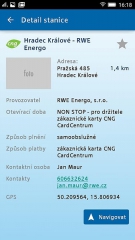 Tato aplikace je nejkomplexnější a slouží řidičům již nejméně 2 roky. Obsahuje navíc, jako jediná z těchto čtyř dostupných aplikací, CNG stanice nejen v ČR, ale po celé Evropě. V aplikaci lze hledat okolo aktuální pozice, nebo zadáním konkrétního města a má i plánovač trasy. Řidiči zde najdou i kontaktní telefon. Její další výhodou je například to, že pouhým kliknutím na adresu stanice se přepnete do navigace (vyzkoušeno na Androidu). Jako bonus se dozvíte podrobné informace o vozech ŠKODA na CNG. Aplikaci lze stáhnout z Windows Phone Store nebo z Google Play. Aplikace je dostupná pro další následující země – Německo, Rakousko, Švýcarsko, Finsko, Francie, Španělsko, Portugalsko, Belgie, Nizozemsko, Itálie, Velká Británie a Dánsko. Výhodou dalších dvou aplikací s názvem CNG stanice (obou poskytovatelů, Pražská plynárenská i RWE) je častá aktualizace, nové stanice jsou v jejich aplikacích dříve než ve druhých dvou uvedených.