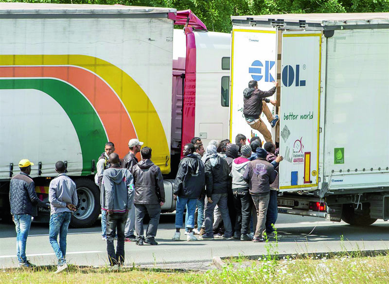Následně uprchlíci pomocí páčidel rozlamují zabezpečení návěsů a snaží se ukrýt uvnitř. Je běžné, že do kamionu se prolomí deset až dvacet běženců, kteří kromě škod na vozidle zdevastují i převážený náklad. Policie tváří v tvář přesile rozvášněného davu zpravidla kapituluje a je schopna uprchlíky dostat z vozidel až těsně před naloděním a ani zde není její pomoc stoprocentní.