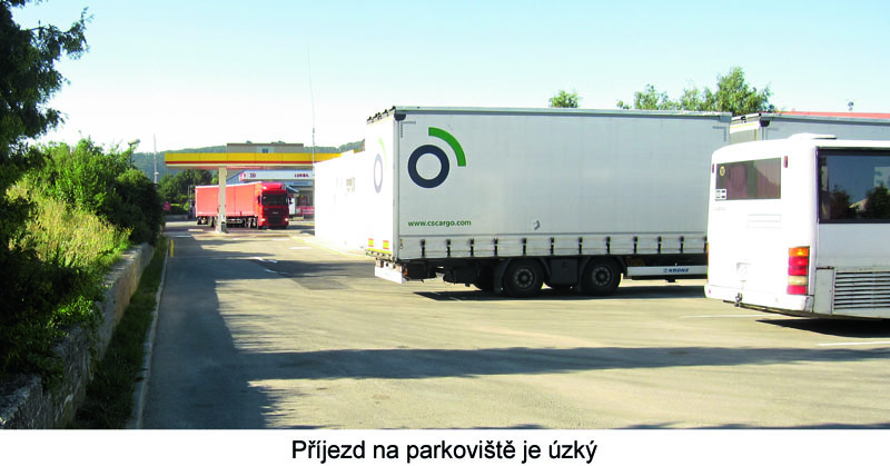 Přímo ve městě Hranice na Moravě, pod obrovským komplexem továrních hal původně určených k výrobě televizních obrazovek Philips, zastavuji na neoznačeném, malém a za čerpací stanicí skrytém parkovišti. Malé je tu všechno, včetně jinak velmi pěkné, moderně vybavené restaurace. Nájezd s velkou soupravou vyžaduje obezřetnost, opatrnost, šikovnost a nakonec štěstí, že bude vůbec kde zaparkovat. Kdo se vyzná, ten však jistě neprohloupí. Parkoviště svým umístěním, kromě běžných služeb, umožňuje i značně rozšířit obzor osobního poznání. Stačí vylézt na blízký kopeček a obdivovat mohutnost až monumentalitu již zmíněného továrního komplexu, eleganci nedalekého železničního viaduktu či se vydat trochu dál a jižněji k historickým objektům kasáren a vojenských ústavů.
