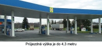 Areál je to sice nevelký, ale moderní, dobře vybavený a udržovaný včetně parkoviště pro velké náklaďáky či autobusy. Parkování vozidel do 3,5 tuny je zdarma, pro těžší vozidla jen po natankování určitého množství paliva, jinak je zpoplatněno. Kromě benzínu a nafty lze u samostatného stojanu čerpat i LPG. K dispozici jsou i další provozní hmoty a služby, včetně obvyklého motoristického zboží, nápojů a pochutin. Uvnitř centrální budovy je kromě prodejny s místem pro rychlé občerstvení vsedě i malá restaurace se samostatným východem do venkovního posezení i sekce s hygienickým vybavením a sprchou. Celý areál má kvalitní různorodý dlážděný povrch a provoz v něm je prakticky jednosměrný. Výjezd je zpět na místní komunikaci.
