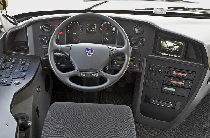 Autokar je nabízen ve dvou úrovních vybavení – Comfort a Premium. Obě verze zahrnují kabinu s chemickým WC situovanou u prostředních dveří, za příplatek i kuchyňský koutek. Klimatizační jednotka instalovaná na střeše vozidla společně s výměníkem topné soustavy jsou standardními prvky, přídavné topení doplňkovým. V základní výbavě nechybí ani videopřehrávač se dvěma sedmnáctipalcovými monitory instalovanými v přední a střední části vozidla. O pohon Scanie Touring se může postarat jeden ze tří třináctilitrových agregátů ve výkonových variantách 410, 450 a 490 k. Unikátní jsou v této společnosti motory 410 a 450 k, které je možné dodat ve variantě, kdy pro následné zpracování výfukových zplodin využívají výhradně systém SCR, tudíž jsou jednodušší, lehčí a velmi úsporné. S výjimkou už zmiňovaných motorů bez EGR je pak možné všechny motory Scania Euro 6 provozovat až na 100% bionaftu. O přenos síly na nápravy se stará osmi nebo dvanáctistupňová převodovka s automatickým řazením Scania Opticruise. Standardem se v komerční dopravě stává telematika, a proto jsou všechny autokary Scania vybaveny jednotkou C200. Ta sbírá data z jízdy vozidla, vyhodnocuje je a zaznamenává události, které nastaly během jízdy. Jde například o vytáčení motoru, překračování povolené rychlosti, prudké brzdění či zrychlování, jízda mimo zelené pásmo, použití retardéru, jízda na neutrál, zapojení odběru výkonu a další faktory, které je možné definovat podle požadavků. Zatímco telematika je běžnou součástí téměř všech nových vozidel, tak systém AEB (Advanced Emergency Braking) lze zatím považovat za unikátní a poměrně neobvyklý bezpečnostní prvek. Kombinace radaru s dlouhým dosahem a kamery zajišťují kontrolu prostoru před vozidlem, a pokud se objeví překážka – ať už stojící nebo pomalu se pohybující – vozidlo automaticky začne brzdit a zabrání nehodě.
