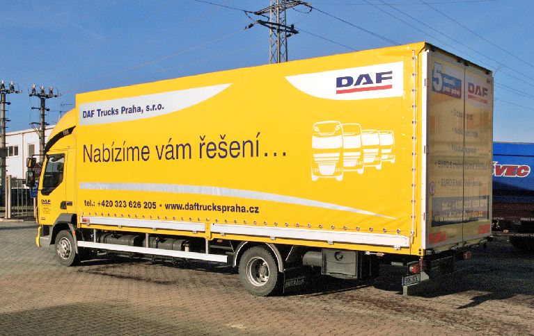 Motory PACCAR FR a GR využívají pokročilý vysokotlaký systém vstřiku paliva, díky čemuž je dosaženo co nejvyšší možné účinnosti a co nejnižších dosažitelných emisí pevných částic. Žádný z těchto motorů nevyžaduje částicový filtr k tomu, aby splňoval přísné požadavky emisí 0,03 gramu na kW za hodinu (ETC) odpovídající Euro 5. Navíc jsou všechny čtyřválcové motory PACCAR FR dostupné i v provedení, které bez filtru pevných částic splňuje ještě přísnější emisní standardy EEV. Aby se dále zvýšila efektivnost řady LF, je nyní regulátor brzd řízený podle zatížení vozu, ovládán elektronicky, tím je dosaženo dokonalejšího rozdělování brzdné síly a snížení údržby. Nově také jsou všechna nápravová ložiska LF45 díky použití nového typu těsnění kompletně bezúdržbová. Tolik tedy obecně k inovaci řady LF.K redakčnímu testu jsem v servisu importéra v Jažlovicích u dálnice D1 převzal DAF FA LF45.210 se standardní dvoumístnou budkou se sklopným lůžkem a s valníkovou nástavbou s plachtou s celním uzávěrem. Už první pohled na vozidlo ale signalizoval, že nejde o klasickou distribuční verzi určenou pro regionální rozvoz zboží. Na budce totiž byla namontována spací kabina Pony Fantasy a dlouhý rozvor s nástavbou (karosárna AutoTech Vinoř) v maximální karosovatelné délce jasně předurčovala konkrétní vozidlo k dálkovým jízdám s objemným ale lehčím nákladem, jako je např. izolace, polystyren, laminát apod.. Celková hmotnost trucku 11 990 kg totiž zůstává ve výhodnějším limitu, pokud jde o mýtné na dálnicích.