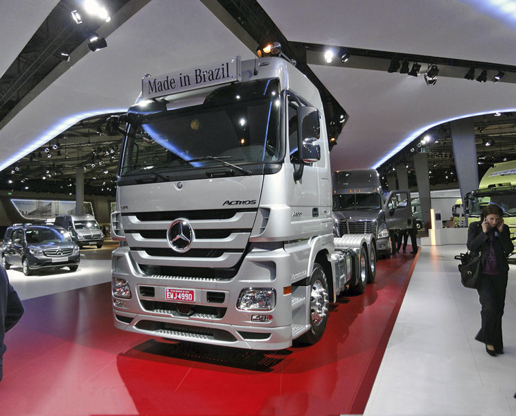 Přes pokles trhu v Brazílii asi o 15 % tam stále jde o jeden z největších (cca 130 tisíc středních a těžkých vozů ročně), stejně jako v Indii (300 tisíc) a samozřejmě v Rusku a Číně. Situace v Evropě je stabilní, navzdory následkům krize se celkový prodej MD/HD (medium/heavy duty trucks) koncernu Daimler Trucks do konce srpna zvýšil o dvacet procent. Horší je situace s autobusy a dodávkovými vozy, jejichž odbyt klesl. Těžký tahač Mercedes-Benz Actros, Truck of the Year 2012, dostal nové řadové šestiválce v rámci downsizingu (motory V8 se nyní z užitkových vozů vytrácejí, věrná jim je především Scania), typy OM 470/471 a OM 936, jež splňují emisní předpisy EU6 a snižují spotřebu paliva optimalizací celé poháněcí soustavy PPC (Predictive Powertrain Control), která koordinuje údaje GPS, tempomatu a samočinné převodovky PowerShift pro hospodárnou jízdu. Systém Active Brake Assist třetí generace samočinně brzdí před překážkou a dokáže tak zabránit havárii, anebo alespoň zmírnit její následky.