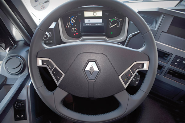 To vše a ještě celá řada dalších věcí mi šla hlavou při vyzvednutí silniční soupravy s tahačem Renault Trucks T 520.13 Highcab 4x2 T E6 (LHD) na parkovišti Tronchetto v Benátkách. Moderní, pro někoho na první pohled svým vnějším designem nezvyklá, kabina „Téčka“ je řešena z pohledu nástupu řidiče o poznání konzervativněji než u předcházejícího Magnumu. Pryč je nutnost zašpinit si ruce a okousat či dokonce poslintat papíry při zdolávání vnějšího žebříku při nástupu do vozu. Do „Téčka“ stačí jen jednoduše otevřít dveře a v pohodě se vyhoupnout do sedla. Přístrojové desce dominuje sedmipalcový displej (největší na trhu), před ní se nabízí multifunkční volant s ovládáním umístěným jak na čelní, tak na zadní straně jeho příček. Po levé ruce je to zespodu tlačítko tempomatu, svrchu nastavení rychlosti, vypnutí a opětovná aktivace tempomatu. Na pravé ruce je zespodu volantu vícefunkční rolnička, pomocí níž se lze pohybovat v menu vozidla a potvrzovat výběr, svrchu jsou opět tlačítka ovládající spárovaný telefon, opět menu a „krok zpět“. Ostatní ovladače pěkně po ruce včetně otočného nastavení aktivního tempomatu, ACC, se třemi úrovněmi udržování vzdáleností od vpředu jedoucího vozidla. Třešničkou je taková drobnost jako ovládání elektronické parkovací brzdy umístěné na horní hraně pravé boční části přístrojové desky a to tak, že řidič nemusí prakticky sklopit oči ze směru zamýšleného rozjezdu.