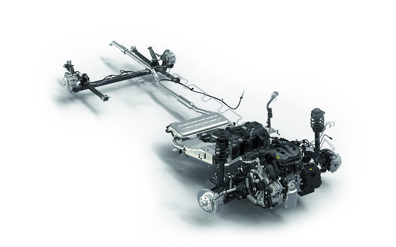 K dispozici jsou dvě motorizace. Tradiční vznětový čtyřválec přeplňovaný turbodmychadlem Ecodiesel (3,0 l, DOHC, Common Rail, 174 k při 3600 min-1) doplňuje zážehový vidlicový šestiválec Chrysler (3,604 l DOHC 24 ventilů, resp. 220 cui, 280 k při 6400 min-1), který má na americkém trhu velmi silnou zákaznickou pozici. Samozřejmě, že je s ním spojena též šestistupňová automatická převodovka W/62 TE. Díky zakonstruování benzínového šestiválce byl přepracován celý systém přívodu a sání vzduchu. Mřížka chladiče pak dostala charakteristický tvar, který ji neodmyslitelně řadí do rodiny vozidel RAM. Naopak přední nárazník zůstal v utilitární tmavě šedé barvě a je stále složen ze tří kusů, v případě malého poškození je velmi jednoduché a finančně nenáročné vyměnit právě jen potřebnou část nárazníku.