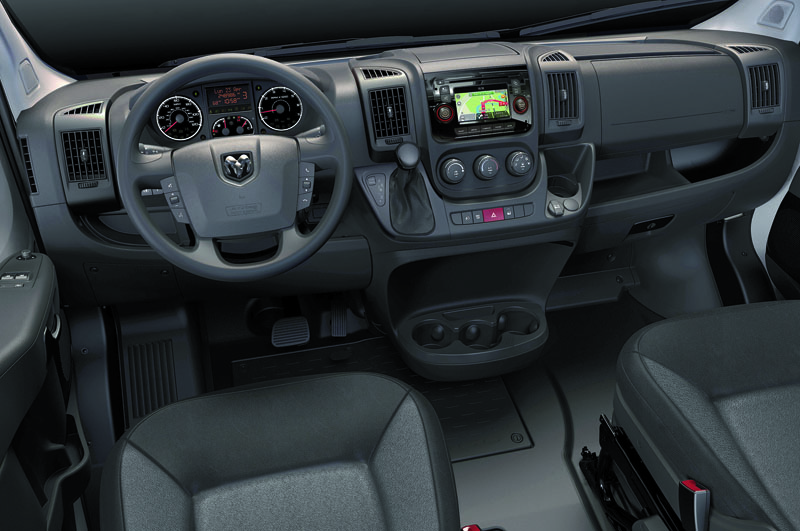 Na přední nápravě jsou nové brzdové disky Brembo vyznačující se nižším příklonem k tzv. vadnutí. Všechny varianty vozidel RAM ProMaster jsou standardně vybaveny elektronickým systémem stability jízdy – ESC. Co se týká interiéru, je na první pohled jasné, že se od evropského Ducata liší především v použití systému Connect s pětipalcovým displejem. Na přístrojové desce je americký displej, multifunkční volant odpovídá zvyklostem vozidel RAM, stejně jako clustery ovládačů. Doplněny jsou držáky pohárů nápojů – nezbytné americké vybavení. Celkově vzato se konverze Ducata na RAM ProMaster dotkla karosérie, hnacího traktu, systému motoru, interiéru vozidla a elektrických systémů. Výsledkem je užitkové vozidlo, které má na americkém trhu zcela výlučné postavení především s ohledem na užitkové vlastnosti, efektivitu, životnost a funkčnost. Modelová řada ProMaster je nejfunkčnější automobilovou řadou užitkových vozidel na americkém trhu a může se pochlubit poměrně dlouhým seznamem „nej“ ve své třídě.