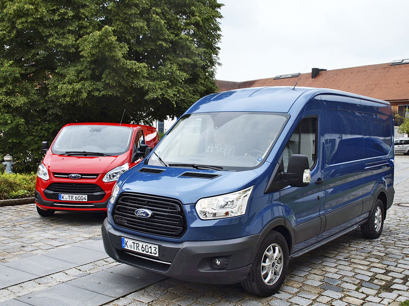 Tyto automobily pohánějí nové vznětové motory Ford EcoBlue. Na čtyřicetikilometrových trasách v okolí Mnichova bylo možno prověřit nové motory v rovinatých, dálničních i kopcovitých úsecích. Výrobcem avizované výrazné snížení provozních nákladů jsme nemohli posoudit, k tomu se dostaneme až v redakčním testu. Aktuální spotřeba byla okolo 7,3 l/km. Prvním testovaným vozem byl Ford Transit s dvoulitrovým dieselovým motorem Ford EcoBlue o výkonu 130 k s šestirychlostní manuální převodovkou s maximálním krouticím momentem 385 Nm, s pohonem předních kol a systémem start/stop. Vůz měl dvojitou kabinu, jízda byla docela dynamická i při jízdě do kopce, Transit velmi dobře sledoval stopu a v zatáčkách držel stabilitu, také funkce brzd byla výborná. Také o tunu lehčí Ford Transit Custom byl snadno ovladatelný a poháněl ho dieselový dvoulitrový motor Ford EcoBlue o výkonu 170 k s manuální šestistupňovou převodovkou, přičemž řazení bylo velmi plynulé a přesné. Motor byl docela nadupaný a dynamický s dobrým a účinným zrychlením.