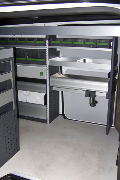 Nákladový prostor je velmi dobře přístupný buď zadními symetricky dělenými dvoukřídlými dveřmi, nebo z pravého boku, posuvnými dveřmi. V obou případech je možné nakládat europalety pomocí vysokozdvižného vozíku. Testované vozidlo bylo ale za příplatek vybaveno posuvnými dveřmi i na levé straně, ale po jejich odsunutí jste se dostali pouze k zadní části některých namontovaných regálových stěn. Na podlaze nákladového prostoru je standardně šest upevňovacích ok. Konkrétní vozidlo mělo ale v nákladovém prostoru po jeho bocích namontován regálový systém Bott, který byl sestaven pro potřebu využití vozidla jako pojízdné dílny. Přístup jak ze zadní části, nebo z pravé strany vozidla je velmi dobrý. Součástí vestavby byla také sestava „Car office Bott“, umístěná na levé sedadlo spolujezdce. Jednak její upevnění ve mně nevzbuzovalo příliš velkou důvěru, a hlavně jsem se při řazení rychlostí vždy o plechovou konstrukci bouchnul. Na pravém sedadle jsem se zase bál, že poškodí okno ve dveřích. Tento detail tedy nástavbář nějak „nedotáhnul do správného konce“.