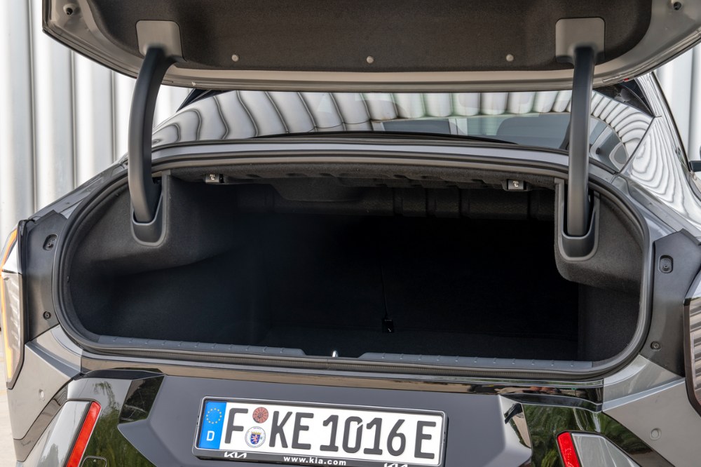 Jako první jsme usedli za volant provedení Fastback se silnějším akumulátorem, obutého do 19palcových kol s pneumatikami Goodyear (v nabídce jsou i 17palcová kola). Zmínka o výrobci pneumatik není náhodná – pro hatchback si totiž Kia nechala vyvinout speciální obutí Michelin, které funguje o poznání lépe. Sedan je naladěn na komfort a jeho podvozek si poradí i s většími nerovnostmi. Kvůli delšímu zadnímu převisu se ale při rychlých změnách směru lehce zavlní. Karoserie se však nenaklání a při prudkém brzdění se nepředklání. Zrychlení z 0 na 100 km/h zvládne za slušných 7,7 sekundy (verze s menším akumulátorem 7,4 s). Jako vůz s pohonem předních kol ovšem při akceleraci ze zatáček jasně dává znát přenos síly do řízení a má tendenci k nedotáčivosti.