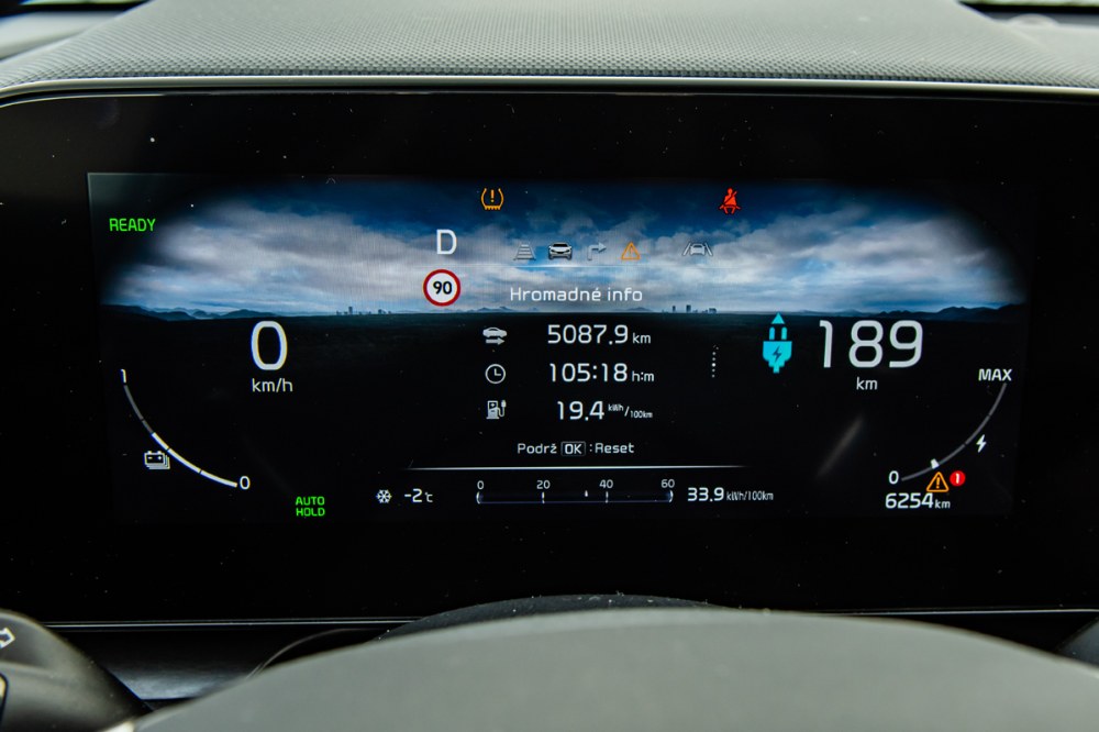 S dojezdem a spotřebou je to složitější. Vůz jsme testovali začátkem prosince, kdy v našich končinách panovalo chladné počasí, a to dělá bateriovým vozům potíže. Celkový průměr testu proto činil 23 kWh/100 km, což znamená dojezd o více než 200 km nižší oproti tomu udávanému. Na druhou stranu, schopnost ujet i v zimních podmínkách bez nabíjení 280 km není mezi elektromobily žádná ostuda. Měření spotřeby na naší tradiční trase zahrnující přibližně 40 % dálnice vykázalo hodnotu 21,4 kWh/100 km, respektive 23,1 kWh/100 km po započtení ztrát při dobíjení.