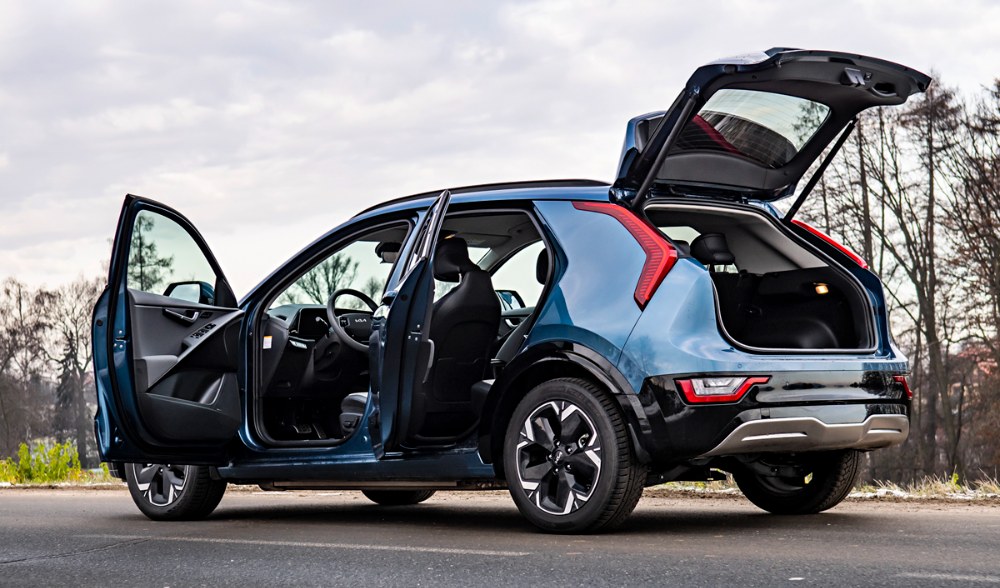 Prostor pro zavazadla má slušných 475 l, respektive ložnou plochu dlouhou 81 cm (+2 cm oproti dosavadní generaci). Šířka mezi podběhy (105 cm) je shodná jak se starým Nirem, tak s typem Hyundai Kona. Pod dnem je ještě menší úložný prostor a další dvacetilitrovou schránku najdete vpředu pod kapotou. Pro tento odkládací prostor se vžilo označení „frunk“. Jde o spojení anglických slov „front“ a „trunk“.