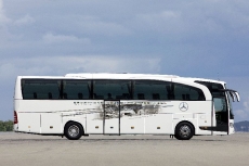 paktní stavbě, jakož i v nízké hmotnosti. Kromě toho disponuje hliníková skříň převodovky stejnými rozměry jako nadále nabízená šestistupňová převodovka, což usnadňuje montáž. Spojkový pedál odpadá. S porovnatelnými jízdními výkony použití převodovky PowerShift na reprezentativních cestách zajišťuje signifikantně nižší spotřebu ve srovnání s vozidlem vybaveném na trhu běžně používanou převodovkou. Univerzální zájezdový autobus představuje Tourismo. Vyznačuje se zdařilou směsí ekonomičnosti, komfortu a bezpečnosti. Program konstrukční řady Tourismo nově rozšířil typ Tourismo RH, který svým subtilnějším provedením získává body zejména v oblasti hospodárnosti. Dále se řada Tourismo skládá ze čtyř variant: Tourisma (12,1 m), Tourisma M/2 (13 m) a dále ze třínápravového Tourisma M (13 m) a Tourisma L (14 m).Pro mnohé dopravce je zajímavý luxusní zájezdový midibus Tourino, který rovněž prošel četnými inovacemi v mnoha směrech a je ideální volbou pro přepravu skupin 30–36 cestujících.