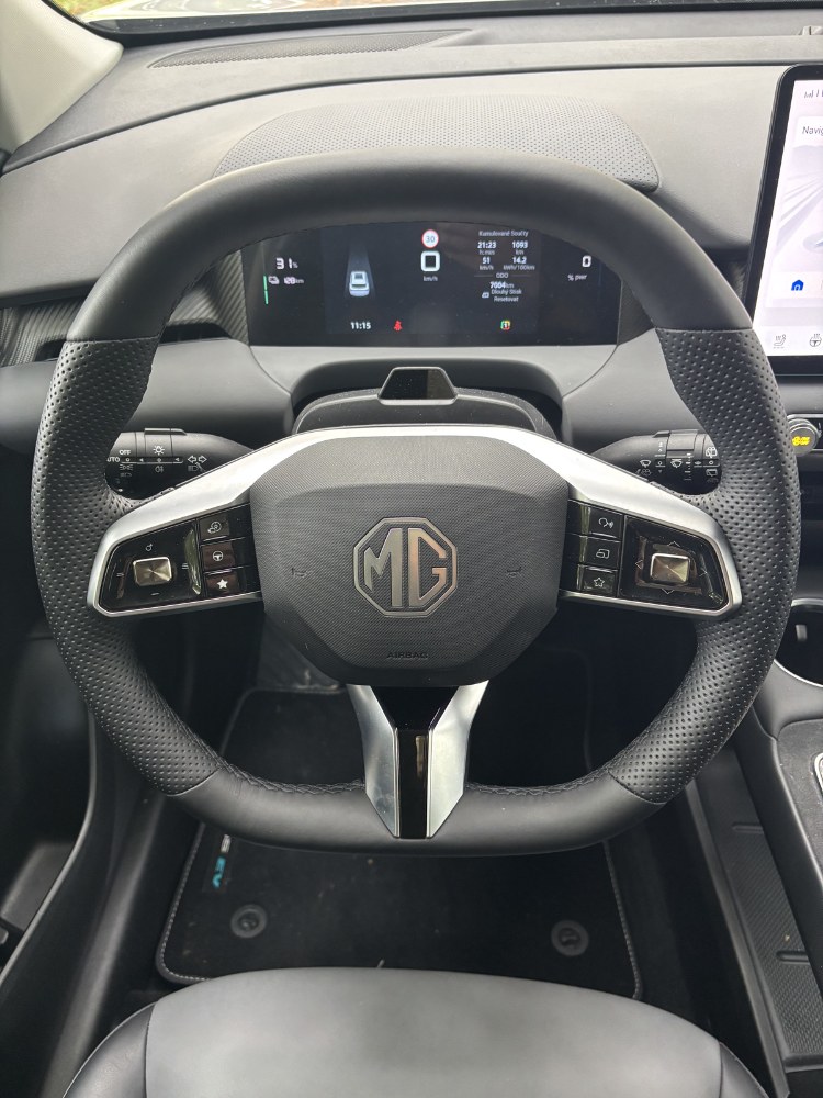 Interiér působí hodnotně a velmi dobře zpracovaně. Designéři zjevně věnovali detailům mimořádnou pozornost. Skvěle tvarovaný kožený volant se znakem MG uprostřed působí precizně, odkládací přihrádka potažená semišem zase vyloženě prémiově. Stejně kvalitní dojem vyvolává i panel klimatizace s hliníkovými otočnými ovladači. Sedadla jsou prostorná a pozice za volantem typicky zvýšená, což zaručuje dobrý výhled do všech směrů. Ve vyšší z nabízených výbav (testovaná Exclusive) jsou sedadla čalouněná kombinací látky a kůže a zaujmou i nápaditým designem.