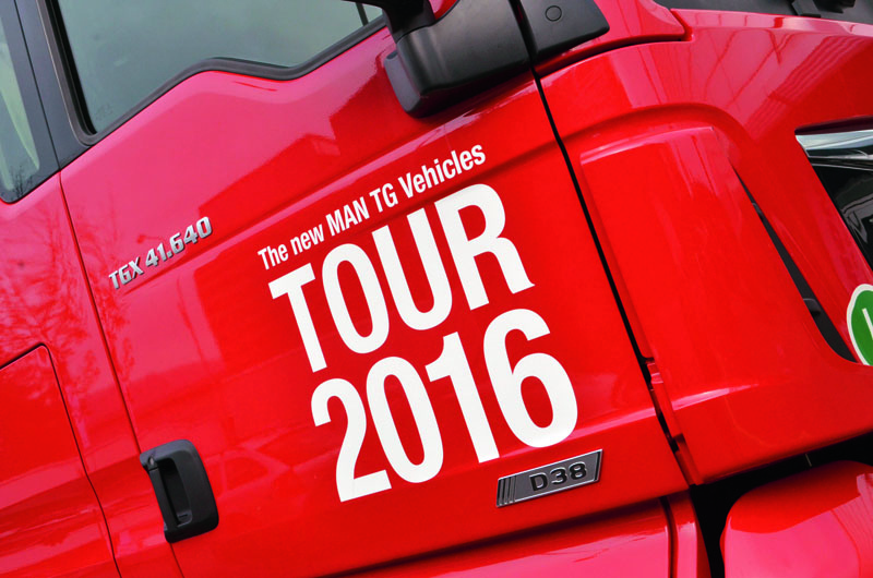 Během dvou podzimních měsíců, říjnu a listopadu, letošního roku proběhla významná dynamická prezentační akce s názvem MAN Tour 2016. V jejím rámci mnichovský výrobce představil při třídenních zastávkách ve vybraných cílových místech skupinu vozidel, z nichž každé je charakteristickým produktem pro daný segment provozu. Všechna vozidla jsou nositeli letošních konstrukčních vylepšení. MAN Tour 2016 započala 10. října v Německu. Pokračovala zastávkami v Rakousku, Francii, Španělsku, Belgii, Dánsku, Polsku a znovu Rakousku, odkud se na dny 14., 15. a 16. listopadu 2016 přesunula do České republiky, do Brna. Závěrečné etapy více než deset tisíc kilometrů dlouhé MAN Roadshow 2016 vedly všechna vozidla přes dvě zastavení v Rumunsku zpět na ulici Dachauer do německého Mnichova, kde bylo dynamické představení vozidel MAN 25. listopadu 2016 zakončeno. V České republice, v areálu brněnského výstaviště, bylo prezentováno dvanáct typických vozidel MAN pro dálkovou dopravu, stavební provoz, rozvážkovou dopravu, komunální služby, dopravu vytěženého dřeva a nadrozměrnou přepravu. Specialitou byla česká premiéra dvou modelů dodávkových vozidel MAN TGE.