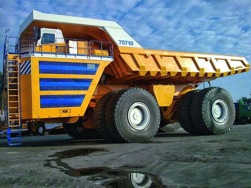 Stavebné sklápače Bucyrus MT6300AC, Liebherr T 282B alebo Caterpillar 797F sú už minulosťou, teraz je svojho druhu najväčším na svete, BELAZ 75710, ktorý zvládne odviesť 450 mt a je veľký ako rodinný domček.