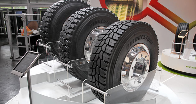 Značné úspory paliva a odpovídající snížení dopadů na životní prostředí umožňuje nová řada pneumatik Ecopia pro nákladní vozidla s výrazně sníženým valivým odporem. Mezi letošní novinky v této oblasti patří pneumatiky Bridgestone ECOPIA H-STEER 001 a ECOPIA H-DRIVE 001 pro dálkovou dopravu. Pneumatiky ECOPIA H-STEER 001 pro vodící nápravy mají novou směs na bočnicích a společností Bridgestone patentovanou směs NanoPro-Tech™, která snižuje energetické ztráty ve vrchní vrstvě běhounu v průběhu rotace pneumatiky. Výsledkem je o 18,9 % nižší valivý odpor bez kompromisů v oblasti přilnavosti na mokru, bezpečnosti a životnosti. Pneumatika ECOPIA H-DRIVE 001 pro poháněné nápravy se může pochlubit dokonce pozoruhodným zlepšením valivého odporu o 26,5 % díky dalším úpravám zahrnujícím mimo jiné speciální dezén a novou kostru pneumatiky snižující vnitřní tlak během deformace v kombinaci s výše uvedenou směsí Bridgestone NanoPro-Tech™. Nové pneumatiky Bridgestone ECOPIA H-STEER 001 a ECOPIA H-DRIVE 001 nabízejí v průměru snížení spotřeby paliva o 4,4 % v porovnání se současnou řadou pneumatik Bridgestone ECOPIA. Kombinace pneumatik R249 EVO 355/50 R 22,5 (vodící náprava) a M749 315/45 R 22,5 (hnaná náprava) představuje unikátní řešení v souladu s legislativou EU udávající maximální výšku vozu 4 m a vnitřní výšku nákladového prostoru 3 m. Spojení těchto pneumatik na tahačích nízkoložných návěsů umožňuje dosažení nejlepších hodnot nosnosti a maximální využití nákladového prostoru. Podzimní novinkou u Bridgestone je zahájení prodeje nové generace pneumatik R-STEER 001/R-DRIVE 001 pro regionální dopravu. Další novinkou je rozměr 385/55 R 22,5 pro zimní pneumatiky Bridgestone M788 pro vodící nápravy, které se během opotřebení mění z čistě zimních na celosezonní pneumatiky. Uživatelé proto získají v zimním období vynikající ovladatelnost na sněhu a ledu a po příchodu jara a léta vynikající životnost při výjimečné úrovni přilnavosti na mokru. Protektorace nákladních pneumatik Přibližně 40 % pneumatik pro nákladní vozidla prodávaných na trhu náhradní spotřeby v Evropě jsou protektory. Proto jsou od roku 2008 začleněny veškeré klíčové aktivity značky Bandag v Evropě do organizace společnosti Bridgestone Europe. Pro návěsy v regionální dopravě jsou koncipovány celosezonní protektory BTR-WB (Bandag Trailer Regional – Wide Base) poskytující spolehlivý výkon za všech podmínek při pomalém, pravidelném opotřebení a dlouhé životnosti s nízkými náklady na kilometr. Dalším typem protektoru je BDM1 (Bandag Drive Mixed 1) pro hnané nápravy, který je určen pro náročný smíšený provoz na silnici i v terénu. Protektory BRM1 (Bandag Rib Mixed 1) jsou vhodné pro všechny nápravy vozidel provozovaných na silnici i v terénu. Protektory s dezénem Bridgestone R192 poskytují vynikající výkon na mokru, sníženou hlučnost a dlouhou životnost. Nová generace záběrového dezénu BDR-HG (Bandag Drive Regional-High Grip) pro regionální dopravu exceluje ve smíšeném provozu v zimních podmínkách a na suché silnici. Protektory M729 jsou proslulé hlubokým víceblokovým dezénem Bridgestone pro veškerý silniční provoz, v němž osvědčí svou dlouhou životnost a odolnost vůči nepravidelnému opotřebení. Novinkou pro přívěsy v regionální dopravě jsou protektory BTR-WB (Bandag Trailer Regional – Wide Base), které se mohou pochlubit optimalizovanou směsí a dezénem. Tyto protektory lze použít pro všechny oblíbené kostry pneumatik s rozměrem 385/65 R 22,5 a 385/55 R 22,5.