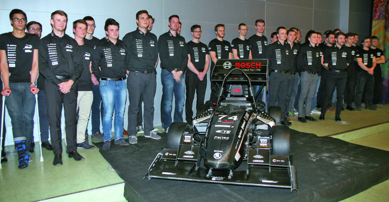 Pozvaní hosté, spolupracovníci a obchodní partneři, mezi nimi také zástupci naší nejstarší automobilky Tatra a soutěžního týmu Tatra Buggyra Racing s tovární podporou, měli možnost shlédnout slavnostní odhalení nového „závodního nářadí“ studentského týmu TU Brno Racing. Sedmý ročník a sedmý formulový vůz vlastní konstrukce a výroby. Tentokrát dokonce s hybridní konstrukcí monokoku z uhlíkových vláken s pomocným trubkovým rámem.