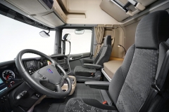 Dokonce již v hodnocení estetického efektu nepřehlédnutelných úprav aerodynamiky budky řidiče, jakkoli se jedná o dojem navýsost subjektivní. Po usednutí za volant stejně tak všichni konstatovali – vlastně (skoro) nic nového pod sluncem. Ale… Úroveň ceněné kultivovanosti řešení interiéru a kvality použitých materiálů dokázali tvůrci posunout ještě výše, i když zachovali elegantní béžovou barvu na většině interiéru. A jakkoli sedadla byla vždy na výtečné úrovni, nyní je instalováno ještě lepší „křeslo“ řidiče. Je postaveno špičkovým subdodavatelem (Recaro) podle zadání ze Södertälje, tj. precizně. Nikoli okrajovým detailem je také nové, ještě přehlednější a lépe uspořádané pojetí ergonomicky příkladného panelu spínačů a ovladačů, navigace a audiosoustavy nastavující laťku do úrovně etalonu. Podstatně významnější, byť neviditelné, úpravy hnacích řetězců se projevují za jízdy snazším ovládáním vozidla a především jednodušším dosažením vyšší provozní efektivity, především nižší spotřeby paliva. Druhá generace motorů Euro 6 sice podle technické dokumentace výrobce poskytují prakticky identické hodnoty největšího výkonu a točivého momentu a ve stejném rozsahu otáček, ale za jízdy v běžném provozu působí dojmem větší pružnosti. Zejména tehdy, když řidič za nižších rychlostí zasahuje do činnosti samočinného systému řazení Opticruise II vlastní volbou převodového stupně.