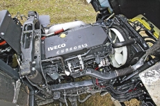 Iveco Trakker si mezitím vede jako vytrvalec. Eurotronic nereaguje, dokud nespadne pod 1000 otáček. A lze ho nádherně řídit plynovým pedálem, chcete-li se vyhnout řazení ve stoupáních. Stačí se pořádně rozmáchnout, šlápnout trochu na plyn a zdolat kopec na vysokém stupni. Stejně tak při zrychlování stačí zvedat pouze pravou nožku a Trakker sám zařadí na vyšší stupeň – ostatně, tento trik dokonale zvládá i MAN a jeho Tipmatic.Méně dokonalá je proti tomu předvolba stupňů pomocí špatně dostupného tlačítka na střední konzole, kterým se přepíná mezi „manuálem“ a „automatikou“. Ze všech účastníků odpérovaných listovými pery, rozmazlí Iveco svého řidiče nejvyšší úrovní komfortu. Díky vzdálenosti mezi první a druhou nápravou (1875 milimetrů) a pneumaticky odpérovanému uložení budky je tento býček jedním z nejpohodlnějších mezi všemi sklápěcími vozy a komfort nosítek pro princeznu se projevuje i nízkou úrovní hluku, která je mezi testovanými vozy druhá nejlepší.