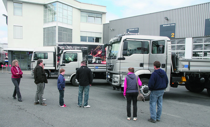 Karavanu 13 nákladních vozidel tvořil zajímavý výběr z každé modelové řady TGL, TGM, TGS a TGX. Pro zkušební jízdy bylo vyčleněno devět typů, většinou tahače návěsů s motory maximálních výkonu 323 kW/440 k a 353 kW/480 k. Zastoupené byly prakticky všechny rozměry kabin, přičemž se v České republice poprvé představila dvojkabina pro pracovní čety 6+1. Dva tahače přepravovaly návěsy upravené pro mobilní expozice: s motorem MAN Euro VI, se systémem dodatečné úpravy výfukových plynů, s velkými barevnými monitory a poutavě zpracovanými tematickými prezentacemi (klub řidičů MAN, telematika, nové motory, efektivní jízda a další). Prezentace typu ROAD SHOW se staly v posledních letech velmi oblíbenou formou, jak efektivně představit nové produkty, navíc jsou účinným nástrojem přímé komunikace s pozvanými zákazníky. Také prezentační akce v Čestlicích u Prahy dopadla velmi dobře, i když počasí zrovna nastupujícímu letnímu období neodpovídalo. Jenže tvrdá práce silničních dopravců se po tom, jak to vypadá na obloze, neptá, a tak, kdo měl chuť, mohl vyzkoušet i čtyři nákladní vozidla, a to nejen díky dokonalé organizaci, ale též velmi pečlivé strategii registrace zájemců o „volant“ vozidel MAN. Otázky zákazníků se samozřejmě točily kolem toho, co dopravce zajímá nejvíce – provozní náklady nových vozidel. Byly rozebírány dopady využití kombinace obou známých technologií čištění výfukových plynů EGR a SCR na vlastní hmotnost a užitečnou hmotnost jednotlivých typů vozidel. Zájem byl o spotřebu a efektivitu provozu. Jasným důkazem pro všechny zúčastněné řidiče za volanty vozidel MAN TG byly potom jejich přímé zážitky a konec konců též hodnoty zaznamenané počítačovým systémem vlastního vozidla. Vše jednoznačně potvrzovalo znovu a znovu oprávněnost hesla: Euro VI přichází, efektivita zůstává.