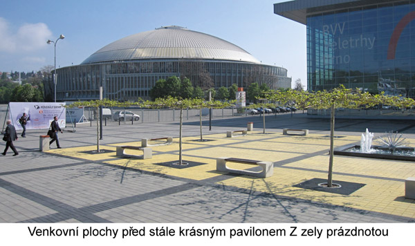 ž půl hodiny před oficiálním zahájením veletrhu, to bylo 23.4. v 10.00 hodin, jsem vyrazil na prohlídku hlavně venkovních ploch výstaviště s úmyslem nafotografovat zde vystavovanou automobilní techniku a zdokumentovat tak významný podíl výrobců automobilů na rozvoji stavebnictví. Ale zaměření veletrhu preferovalo jiná témata – zelenou úsporám, energetickou náročnost budov, dřevostavby, rekonstrukce, technická zařízení budov a vybavení interiérů – a tak plochy, v minulých letech zaplněné stroji různých značek určených pro přepravu nejrůznějších materiálů a manipulaci s nimi, zůstaly letos prakticky prázdné.
