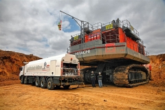 Příkladem může být pásový nakladač Hitachi EX 8000, ten má výšku 10 000 mm, šířku 10 670 mm, šířku pásu 1850 mm a může být vybavený nakládací lopatou o objemu 40 m. Výška od nivelety ke spodní hraně stroje je 3430 mm, běžné automobily jej tedy podjedou. Nakladač disponuje provozní hmotností 811 tun a pohon zajišťují dva vznětové motory Cummins s výkonem 1450 kW (každý). Stroj je celkově řešený pro pracovní nasazení 24 h denně, proto musí mít i potřebnou zásobu motorové nafty, jeho palivová nádrž tak pojme 14 900 l nafty. Pro zásobování palivem se používají velké autocisterny, jako jsou zmíněné Tatry s nástavbou Kobit (velkoobjemová návěsová cisterna není v daných podmínkách použitelná). Podíváme-li se zpět na celkový objem pětinápravové autocisterny CN 29K/2 (14 500 l), zjistíme, že pokud by byla palivová nádrž nakladače Hitachi EX 8000 zcela prázdná, zmíněná cisterna se do ní celá vyprázdní. Necháme-li stranou pravostranné řízení cisternových automobilů Tatra, mají ještě jednu zvláštnost, a tou je pro tento druh vozidel nezvyklý ochranný kryt kabiny FOPS (FOPS = Falling Object Protective Structures = ochranná konstrukce proti padajícím předmětům). Jde tedy o „kšilt“ nad střechou kabiny, kterou známe z některých sklápěčkových vozidel a dumperů.