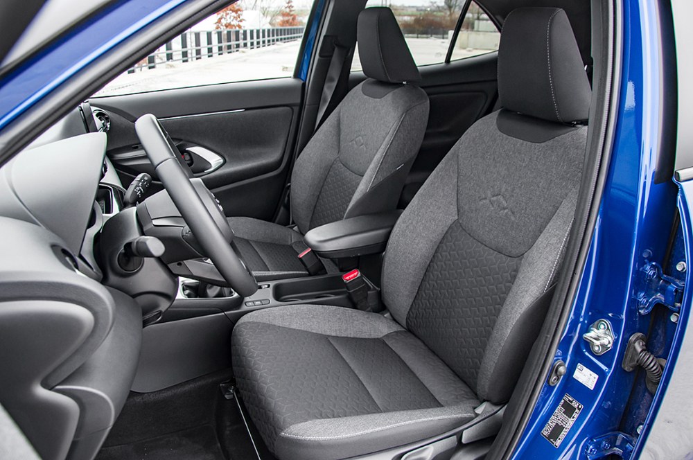 Interiér byl stvořen především tak, aby byl praktický, a pod heslem „Big-Small“ také prostorný. Oproti hatchbacku se zde sedí výše, což nahrává podélnému prostoru ve druhé řadě sedadel. Pocitově možná Yaris Cross nepůsobí jako úplně nejprostornější automobil, nicméně v dané kategorii zaujme. Například šířka v úrovni loktů je 142 cm vpředu a 138 cm vzadu. Ve srovnání s Hyundaiem Bayon je to v obou případech o čtyři centimetry více. Yaris Cross dokonce přerůstá šířkou v loktech vpředu o 2 cm i Dacii Duster. Naopak na Škodu Kamiq už vnitřním prostorem nestačí. Malý crossover z Boleslavi je ale celkově větší automobil.