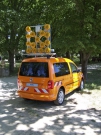 První etapu jsme absolvovali ve verzi Maxi s nejvýkonnějším motorem 110 kW. Do druhé etapy (měla délku kolem 20 km) jsme si zvolili s kolegou ryze užitkovou karoserii van s krátkým rozvorem a se základním „rozvážkovým“ motorem o výkonu 55 kW. Trasa opět vedla po venkovských silničkách, a obsahovala jak velké množství zatáček, tak i krátká prudší stoupání. Chybička se vloudila, nákladový prostor byl prázdný, a tak „užitečnou“ zátěží byly toliko naše dvě postavy, odhadem tak 205 kg. Samozřejmě, že motor s touto hmotností neměl žádné problémy. Škoda, taková naplněná a dobře upevněná bedna s pískem by při seznamovací jízdě v kopcovitém terénu prověřila výkon motoru i jízdní vlastnosti mnohem lépe. Do třetice jsme usedli za volant osobní verze s krátkým rozvorem, ale s pohonem 4Motion, tedy s pohonem všech kol. A našli jsme si i neznačenou, kamenitou „polňačku“ s několika prudkými výjezdy. Ani se neptejte, samozřejmě, že spojka Haldex zafungovala perfektně a ani jedno z poháněných kol se na vápencové drti neprotočilo. A to jsme se schválně rozjížděli uprostřed kopce (pochvala pro asistenční systém rozjezdu do kopce).