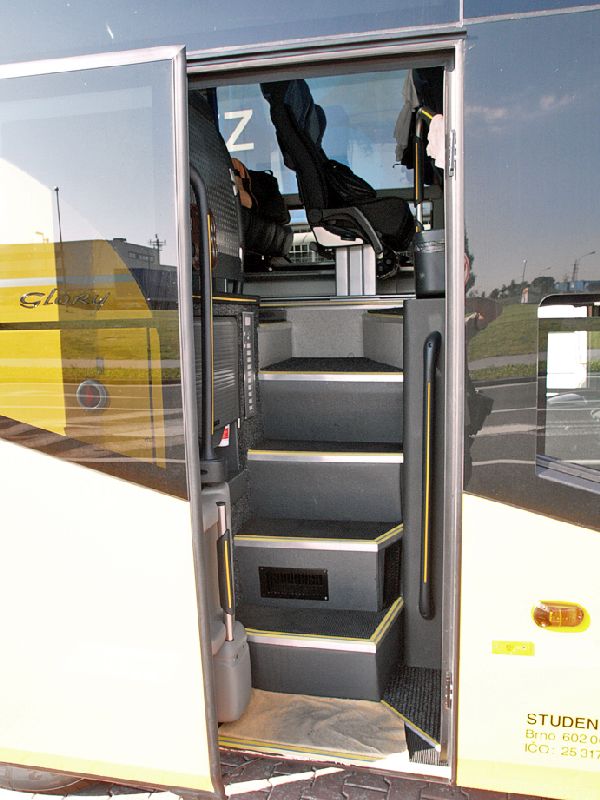 Námi zkoušený vůz ve žlutém provedení byl určen pro známého českého dopravce Student Agency a je postaven na podvozku Volvo B12B. Byl vybaven motorem o výkonu 460 koní s motorovou brzdou VEB, automatizovanou převodovkou I-Shift a integrovaným retardérem Voith. Zvláštností polopater je možnost, jako v tomto případě, úplně oddělit prostor pro posádku od prostoru určeného cestujícím. V takovém případě nalezneme na levé straně samostatné dveře pro řidiče, a na straně pravé dvojici dveří v přední časti před nápravou a jedny umístěné tradičně uprostřed. Prvními z přední dvojice se dostaneme do oddílu posádky a druhými po příjemných 6ti schůdcích do zvýšeného patra.V případě potřeby samozřejmě nemusí posádka vybíhat ven, aby se dostala k cestujícím, ale může projít dveřmi na zadní stěně svého oddílu rovnou na schody do patra. Můžete mít ale i provedení, kde spodní prostor není oddělený stěnou, ale jsou v něm umístěna další sedadla nejen pro posádku.