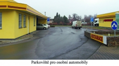 A právě na jihovýchodním okraji Břestu je skoro hektarový areál čerpací stanice s parkovištěm "pro TIR". Celý leží východně od silnice, ale přesto je dostupný z obou směrů, a to dokonce jedním společným vjezdem, který je současně i výjezdem a navíc i začátkem místní komunikace směřující mimo popisovaný areál. Čerpačka nedávno změnila provozovatele a některé původně nabízené služby momentálně nefungují; platí to zejména o restauraci a službách na ni navazující – z občerstvení jsou k mání hlavně nápoje, i teplé, prodávané v obchodě u pokladny. Pojížděné plochy, včetně parkovišť osobáků v okolí výdejních stojanů, jsou kryty asfaltem, povrh parkoviště za restaurací je celý vyhotoven z betonové zámkové dlažby. U restaurace je místo pro venkovní posezení, "zahrádka" s přístřeškem i ohrazená zatravněná plocha. Výjezd z areálu je složitější, nejdříve je třeba dát přednost provozu na místní komunikaci a posléze zastavit před vyjetím na silnici 55.