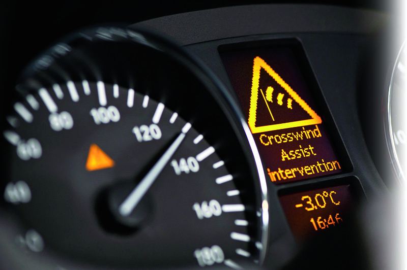 Rychlostní okruh na testovacím polygonu Bosch v Boxbergu má klopené zatáčky. I když se to nezdá, byly dobré a k upotřebení. Pro správnou demonstraci systému jsem byl nucen Sprinter rozjet na 110 km/h a držet rychlost až na protilehlou rovinku. Tam, u krajnice stála baterie elektrických větráků, která „funěla“ rychlostí 60 km/h kolmo na vozovku. Dokonalá simulace toho, když třeba na dálnici předjíždíte kamion a foukne vám vítr z boku. Či míjíte protihlukovou stěnu, která končí a vítr dokonale kolmo vane na váš vůz. Řekne se: „ono to není zase tak podstatné, každý řidič by se měl umět s takovou situací vyrovnat a nakonec ji také předvídat. Při řádném sledovaní provozu a povětrnostních podmínek to není zase tak velký problém. Jenže assistent je asistent a tomu můžete možná věřit více než sobě – nebo lépe než své stoprocentní soustředěnosti.