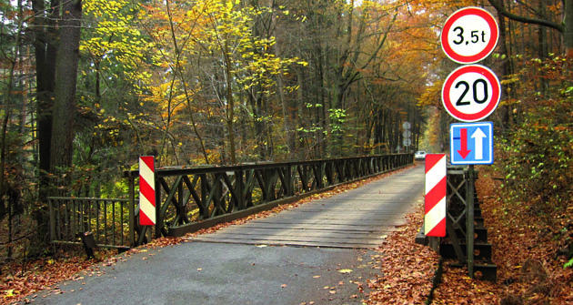 V Moravském Krasu nedaleko obce Holštejn, v přírodní rezervaci Bílá voda, lze ještě stále se projet po dnes už velmi neobvyklém silničním mostu.